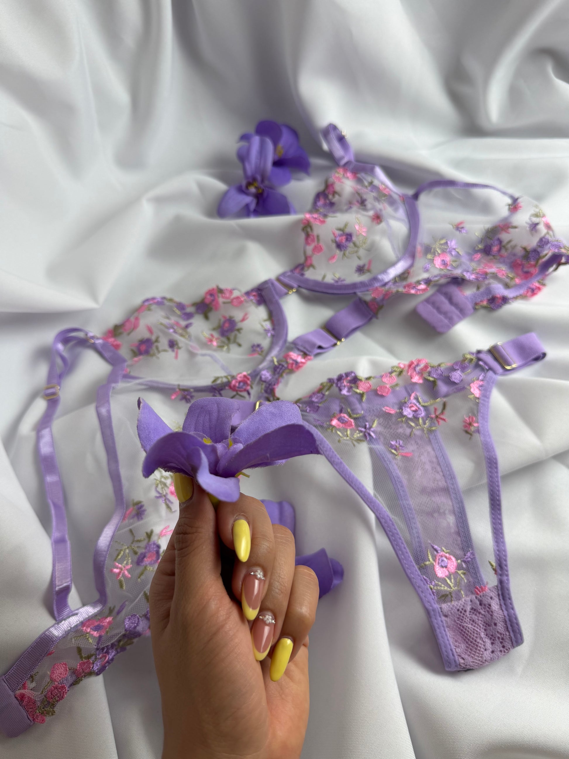 Característica: Bra en tela transparente con detalle bordados, su copa lleva varilla para brindar mayor ajuste y soporte. Panty talla única, es graduable y se ajusta perfectamente a la medida (Disponible por tallas) Debes basarte en la talla que uses normalmente en brasier.