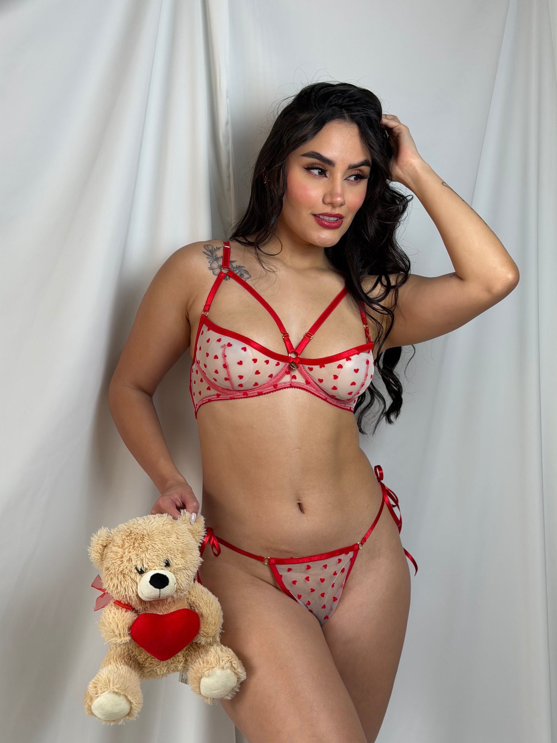 Set de Lencería Ref. Alma Olvida lo predecible. Este conjunto es para quien se atreve a sentirse completamente viva, sexy sin disculpas y cómoda en su propia piel. Detalles sensuales estratégicamente diseñados despiertan la confianza y la pasión en cada movimiento. Perfecto para reconectar con tu pareja, para recordar que el amor y la intimidad merecen ser celebrados sin límites. No es lencería básica; es tu invitación a salir de la rutina y reclamar los momentos que realmente importan.